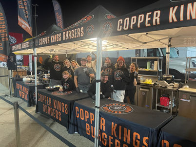 Copper Kings Burgers started with humble beginnings in October 2020, with Dermot and Jon spending early mornings preparing ingredients out of their shared Oceanside commissary kitchen, and long nights serving burgers to the public together at breweries and wineries across North County San Diego. Today, Copper Kings proudly call San Marcos “home” and employs an amazing team of some of the hardest working culinary talent that San Diego County has to offer, and operate two mobile kitchen trailers that traverse across Southern California (and even out to Las Vegas, Nevada for the Mint 400!) to serve at breweries, wineries, and catered personal and public events.